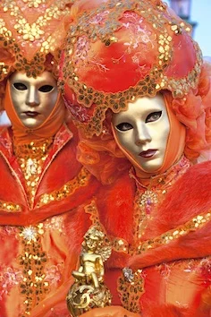 Some people dressed in fancy costumes and wearing masks in Venice at Carnevale ©Jupiter Images