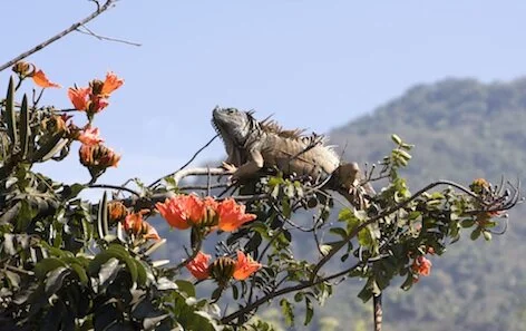 Some species can grow as large as 1.8m long, including tail. Iguanas have excellent eyesight, and use their vision as they move through the forest looking for food.
