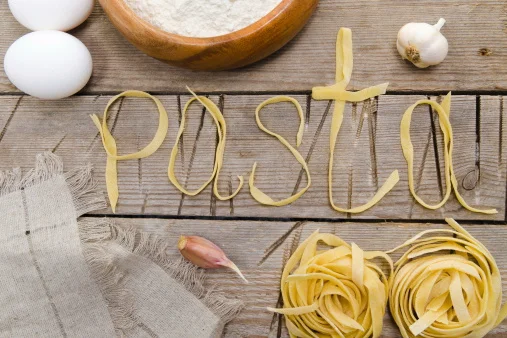 The two basic ingredients are flour, egg and water. The best pasta is made from durum wheat, specially grown for pasta. Sometimes it is combined with semolina, which is from the middle part of wheat grains. Sometimes spinach or tomato is added to the dough to add flavour and colour.
