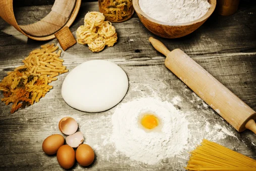 Ingredients for making pasta: eggs, flour, and maybe just a little olive oil. © Getty Images