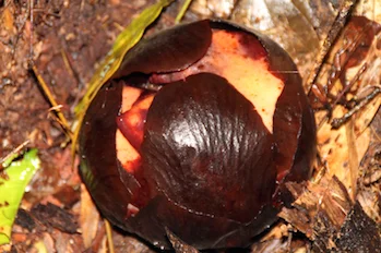 The bud of rafflesia arnoldii emerges through the bark of the host plant. © Getty Images